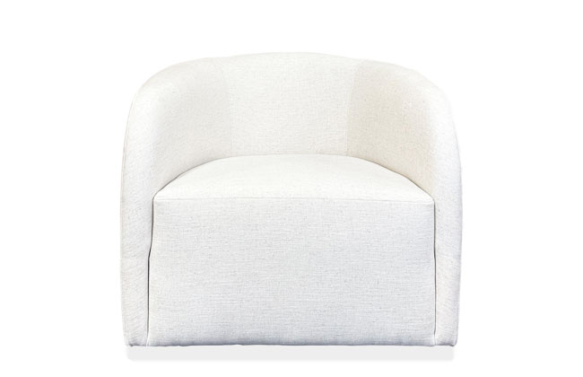 Swivel base rotates 180 degrees before returning to its original position. This barrel chair features gently sloped arms and top-stitching. It pairs great with sofa Style 5010.