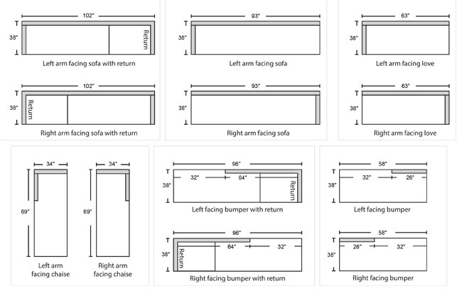 | 1 arm sofa with return | 100 | 38 | 34 | 15.50 |